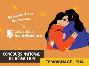 Quand j'étais en 12e année, j'étais en recherche d'occasions de bourses. J'ai pensé que pour la plupart, ça allait être des formulaires à signer qui mentionneraient mes expériences, mes souhaits et pourquoi j'ai besoin de bourses, mais en ayant trouvé le Concours national de rédaction, j'ai trouvé quelque chose de différent! Une occasion de gagner une bourse par écrit! Cela avait l'air comme quelque chose que j'aimerais beaucoup! Oui, c'était en français et avec le français comme deuxième langue, est-ce que ça serait assez bien? J'avais besoin d'argent et j'ai voulu écrire il y a longtemps. Ben, pourquoi pas?